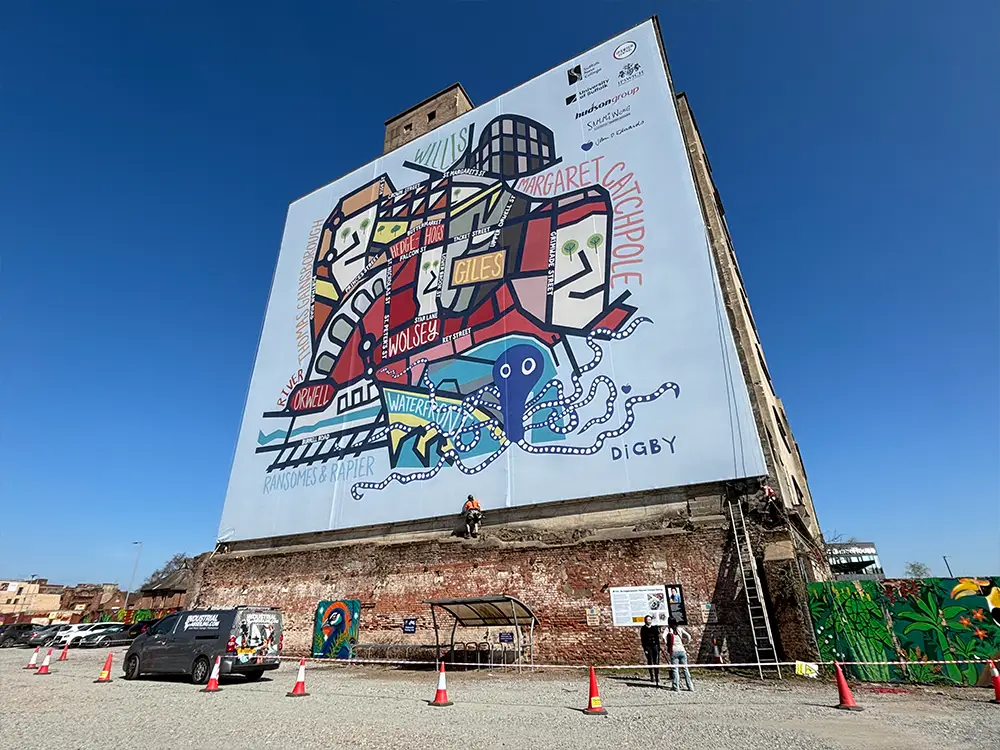 Ipswich Central helped two local art experts bid for and receive funding for new murals that were installed around Ipswich in 2024. Four new giant and vibrant art installations plus other smaller interventions around the town centre, were installed and these are now loved and admired.