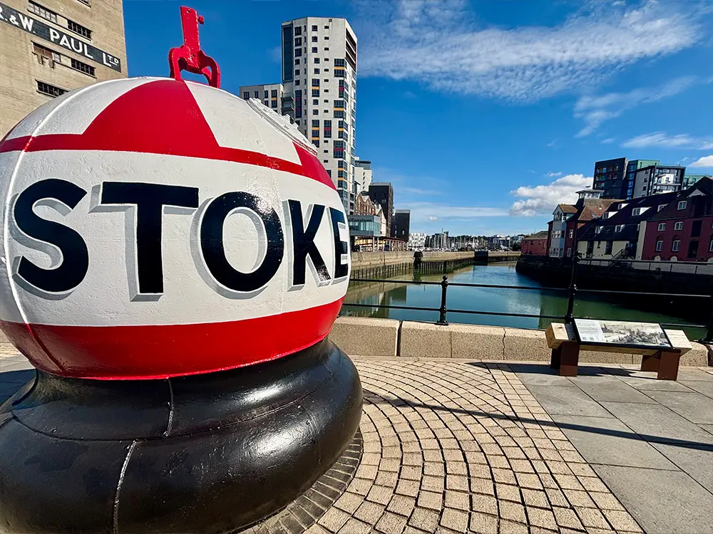 With Suffolk County Council funding, Ipswich Central upgraded the Stoke Bridge viewing platform, transforming this pedestrian area into Stoke Bridge Wharf gateway to the waterfront with new benches, greening, buoy and telephone box painting plus the addition of information panels about why the site is so important to the history of Ipswich.