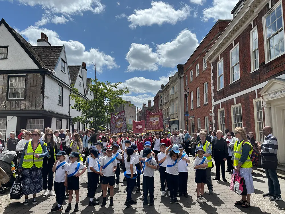 During 18 months in 2024 and 2025, the Thomas Wolsey 550 project, achieved thanks to the National Lottery Heritage Fund, used Cardinal Wolsey’s legacy to inspire the young people and adults through education about Wolsey’s achievements from lowly beginnings in Ipswich. There were Education encounters, a hat parade and Big Huzzah! Plus, Wolsey Place-changer artists brightened the town with a mural and new street art.